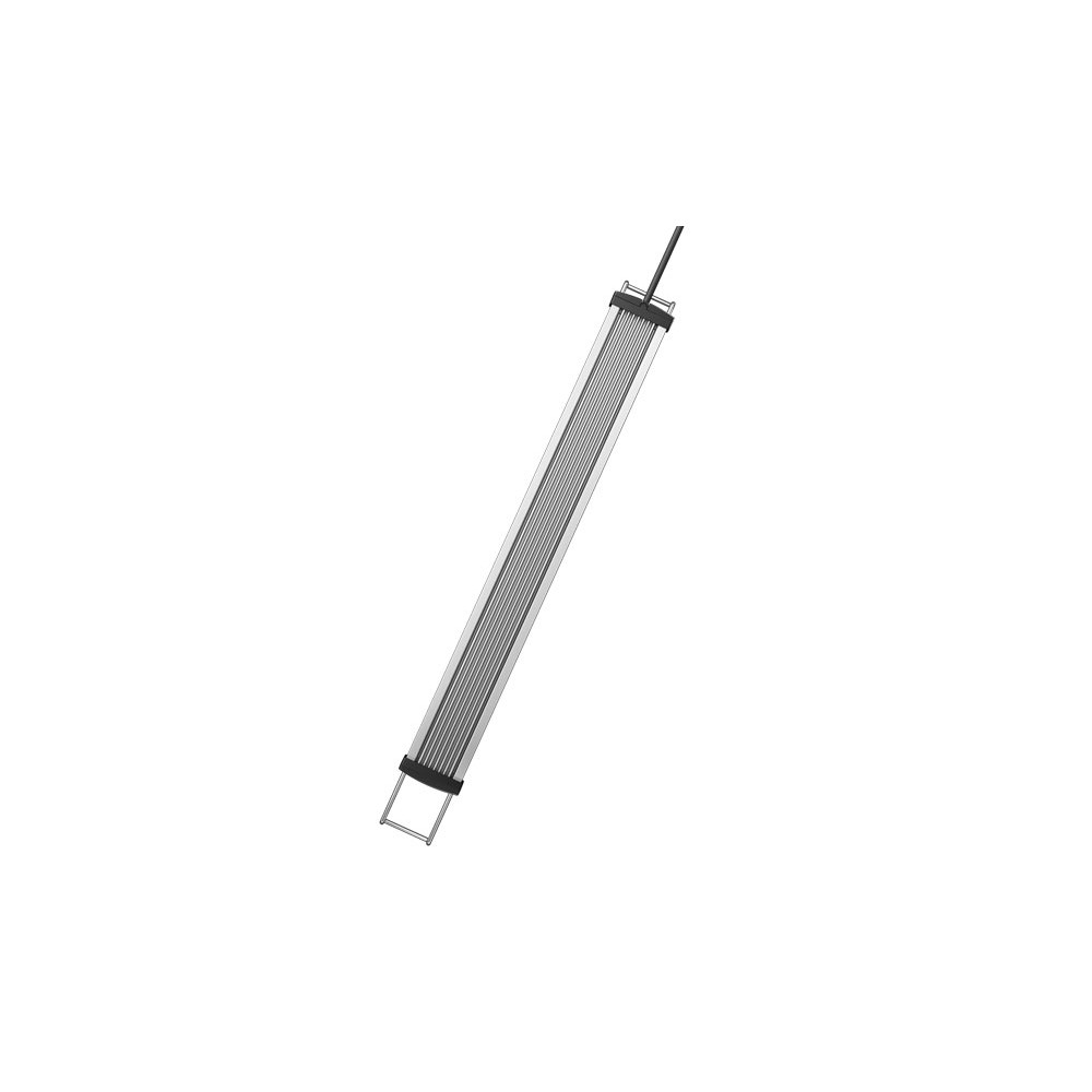 8 comprimentos para aquários de 36 a 135cm de largura (continuamente ajustáveis pelos suportes de fixação de aço inoxidável extensível).